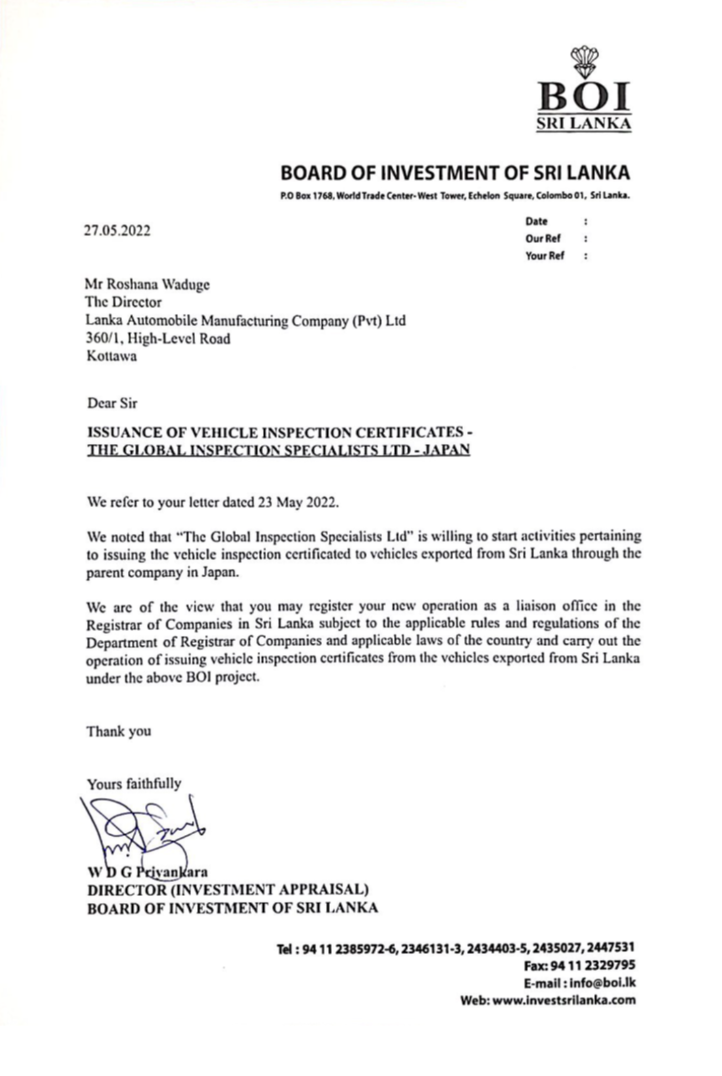 Sri Lanka Approval
